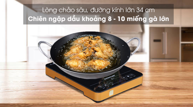 Cho phép chiên ngập dầu được cá nguyên con trên 1.5 kg hoặc 8 - 10 cái đùi gà cùng lúc, thuận tiện cho gia đình 4 - 6 người ăn.