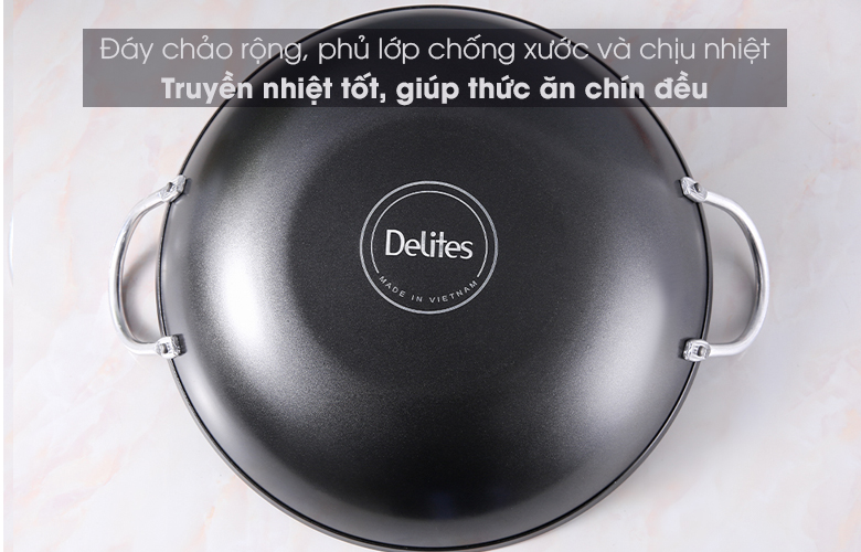 Chảo nhôm chống dính 2 quai 34cm Delites CR002-34 tiện dụng, dùng bền, chiên xào ngon, giá tốt dễ tiêu dùng cho mọi nhà.