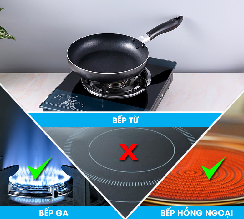 - Không dùng xẻng, thìa, dụng cụ sắc nhọn như dao, nĩa để dằm, cắt thức ăn ngay trên chảo.