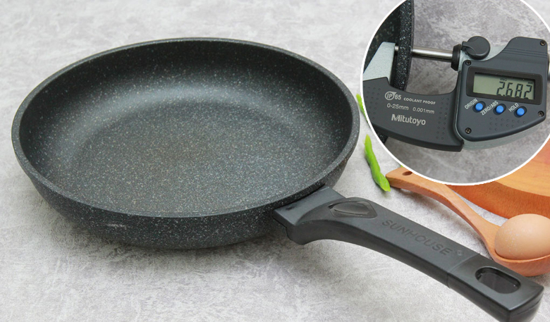 Chảo đá Sunhouse thương hiệu uy tín, sản xuất tại Việt Nam, có độ dày khoảng 2.682 mm giúp giữ nhiệt tốt, có độ bền cao.