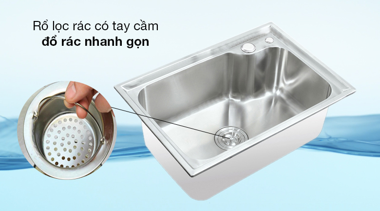 Thiết kế bộ lọc dễ làm sạch hằng ngày, có nắp đậy cho bạn tiện đậy lại để giữ vệ sinh chậu rửa chén.