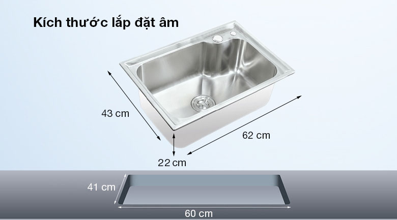 Khoét lỗ đá có kích cỡ thích hợp cho phép bạn lắp đặt nhanh chóng, với độ sâu 22 cm chậu cho không gian chứa đồ rộng, rửa được lượng lớn thực phẩm, đồ dùng cùng lúc. Độ dày chậu rửa chén Eurolife 1 mm cho chậu cứng cáp, chịu lực, bền chắc theo thời gian.