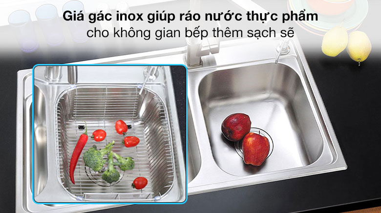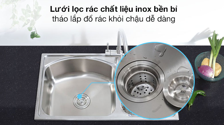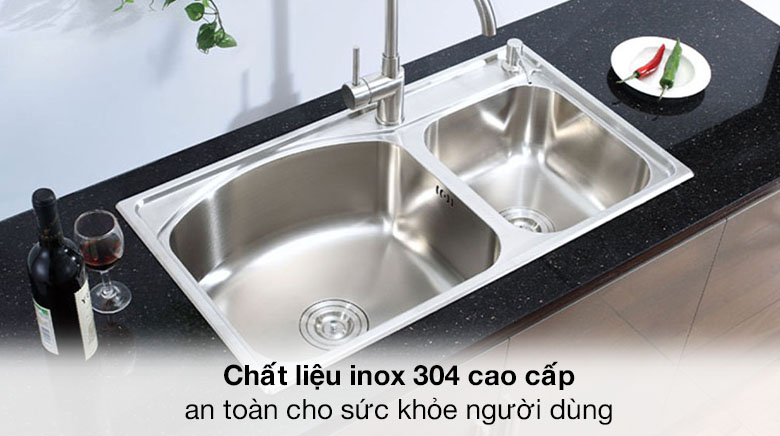 Chất liệu inox 304 nguyên chất hạn chế ăn mòn tối đa, duy trì độ sáng bóng bề mặt, không thôi nhiễm chất độc hại trong quá trình dùng, lại rất dễ làm sạch, an tâm để ngâm rửa thực phẩm ngay trong chậu rửa mà không lo gây hại.