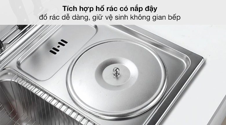 Đổ rác dễ dàng với hố rác bên hông tiện lợi có đi kèm nắp đậy, giúp chậu sạch sẽ hơn, giữ vệ sinh không gian bếp