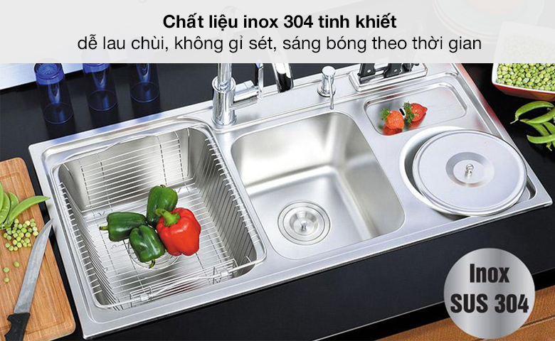 • Chậu làm từ inox SUS 304 tinh khiết với độ dày 1 mm, an toàn, luôn bền bỉ và sáng bóng.
