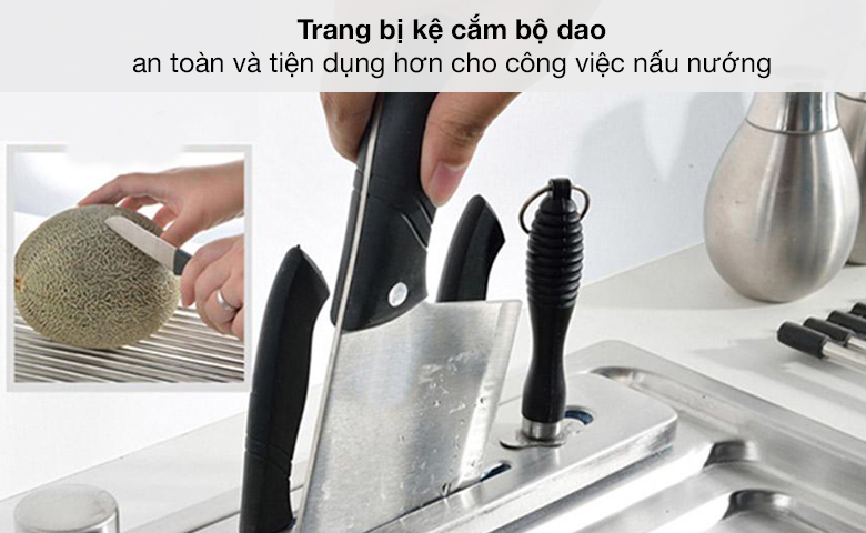Chỗ cắm dao - Chậu rửa chén 2 ngăn 1 hố rác inox Eurolife EL-C9245