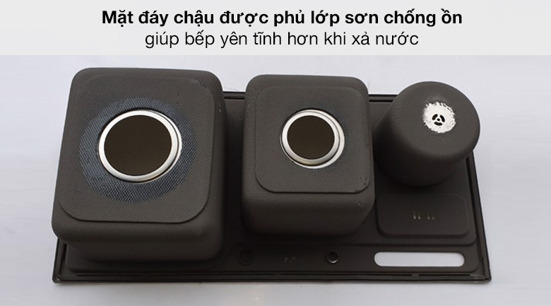 Mặt đáy của chậu được phủ một lớp sơn chống ồn, giúp bếp yên tĩnh hơn khi xả nước