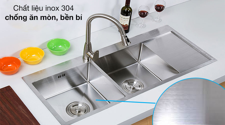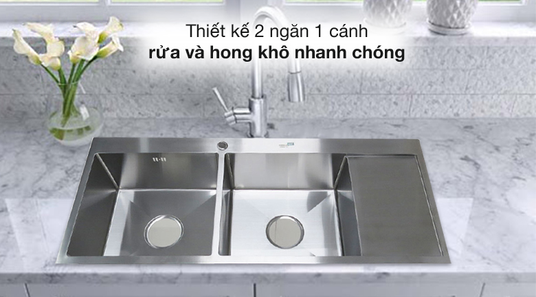Kích thước tổng thể của bồn tương ứng: dài 120 cm, rộng 50 cm, sâu 22.2 cm cho không gian chứa đồ rộng, rửa được lượng lớn thực phẩm, chén đĩa cùng lúc. Độ dày lên đến 4 mm chịu va đập, cứng cáp, bền chắc.