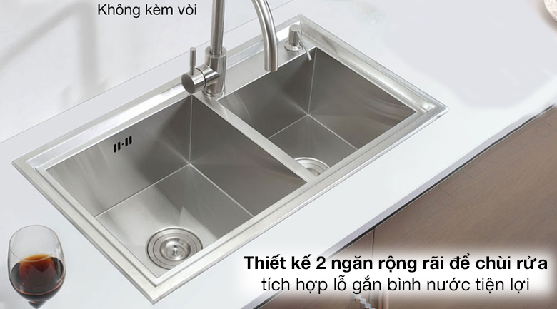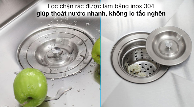 Chậu được tích hợp thêm lỗ gắn bình nước rửa chén hoặc có thể dùng để lắp vòi nước tinh khiết.