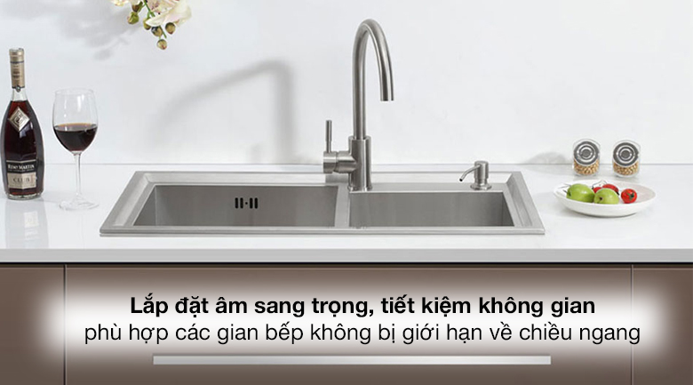 Lắp đặt âm tiết kiệm không gian sử dụng với kích thước lắp đặt mặt đá chiều dài 80 cm - rộng 44 cm.