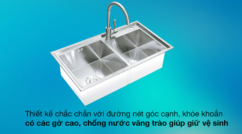 Xung quanh viền chậu là các gờ cao, chống nước văng trào ra bên ngoài khu vực rửa, giúp căn bếp khô ráo, sạch sẽ hơn.