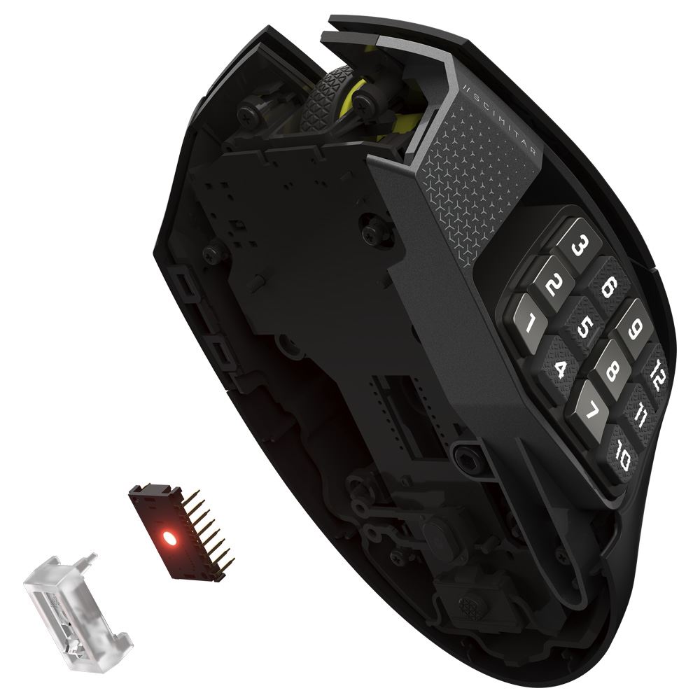 Điểm nhấn ấn tượng của SCIMITAR ELITE SE chính là cụm 16 nút bấm MMO gaming có thể lập trình được, nằm gọn gàng bên cạnh sườn. Kết hợp cùng switch Corsair OPX Optical-Mechanical độc quyền, các nút bấm này mang lại độ nảy tốt, độ êm ái khi nhấn và tốc độ phản hồi tức thì với Polling Rate 1000 Hz. Bạn sẽ dễ dàng thực hiện hàng loạt combo phức tạp, tung chiêu thức nhanh chóng và làm chủ mọi tình huống trong game.