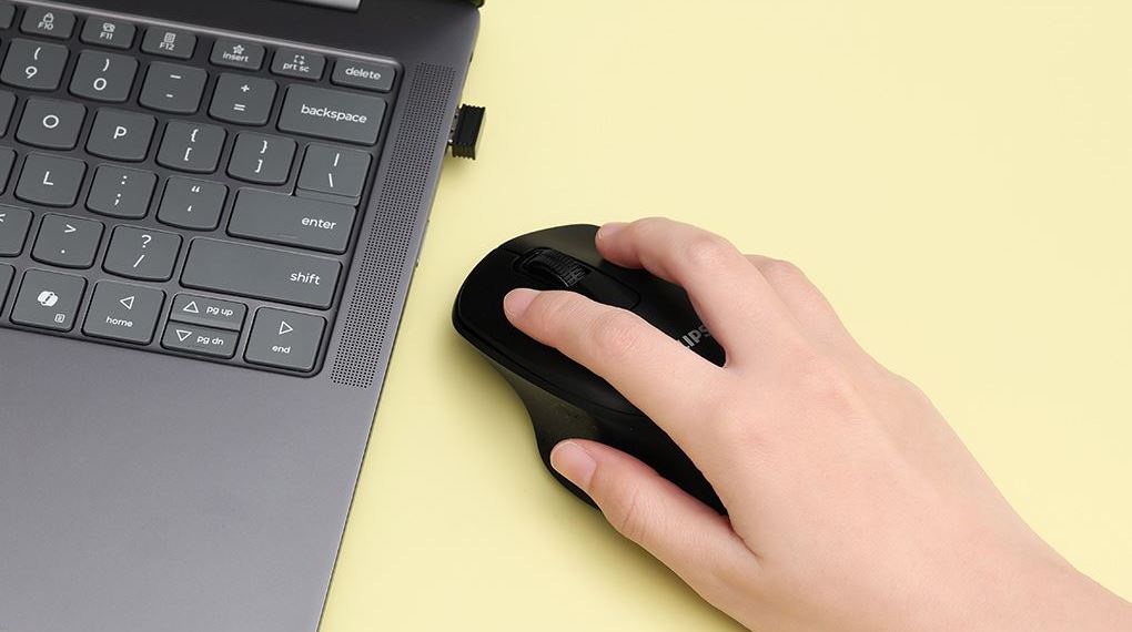 Điểm mạnh nổi bật của chuột Philips này nằm ở khả năng kết nối linh hoạt. Bạn có thể chọn kết nối Bluetooth để tiết kiệm cổng USB trên laptop, hoặc sử dụng USB Receiver đi kèm nhằm đảm bảo độ ổn định khi làm việc trong môi trường có nhiều thiết bị không dây khác.