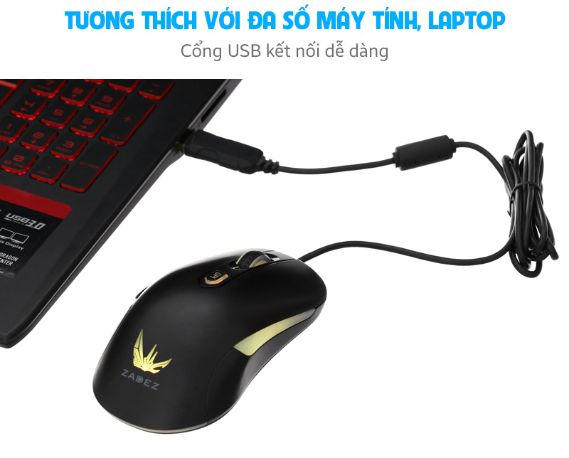 Thân chuột có đèn LED RGB đẹp mắt, tăng sự thu hút cho vẻ bề ngoài của chuột gaming.