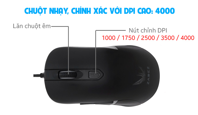 Trang bị nút điều chỉnh DPI để người dùng dễ điều chỉnh, với DPI tối đa 4000.