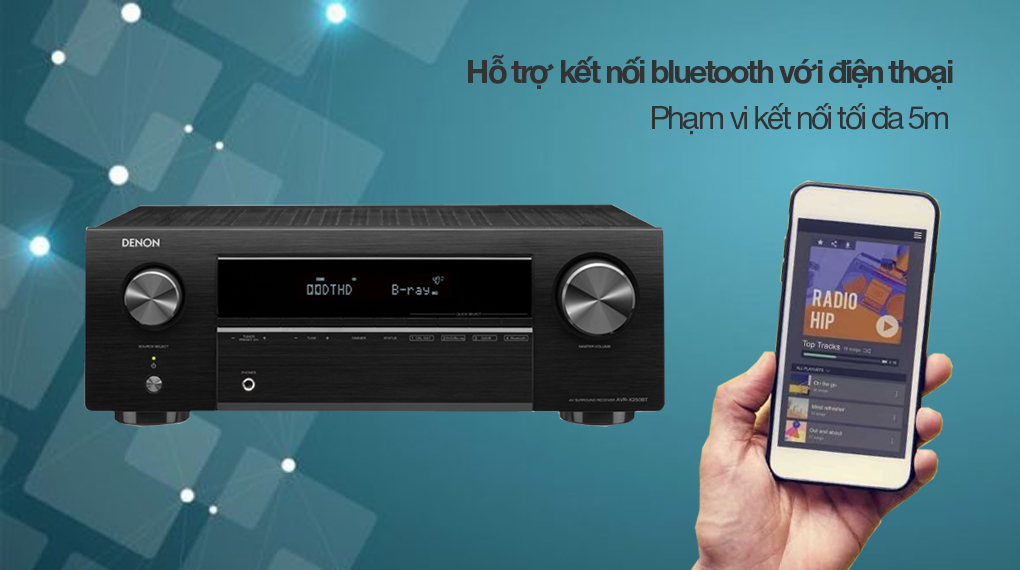 Mẫu amply Denon này còn có khả năng kết nối bluetooth dễ dàng trong phạm vi tối đa 5m với điện thoại, nhờ đó giúp người nghe có thể phát nhạc từ xa thuận tiện hơn.