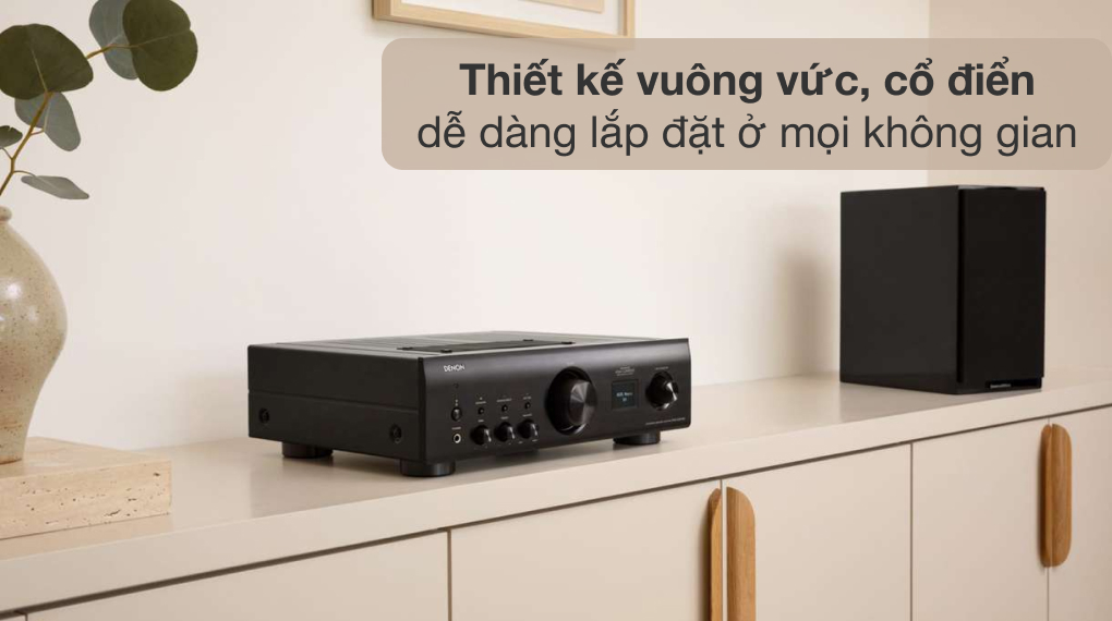 - Denon PMA900HNEBKE2 thiết kế dạng hình chữ nhật, nhỏ gọn, cổ điển, cùng tone màu đen sang trọng, thanh lịch, cùng với dàn loa tạo điểm nhấn cho không gian nhà.