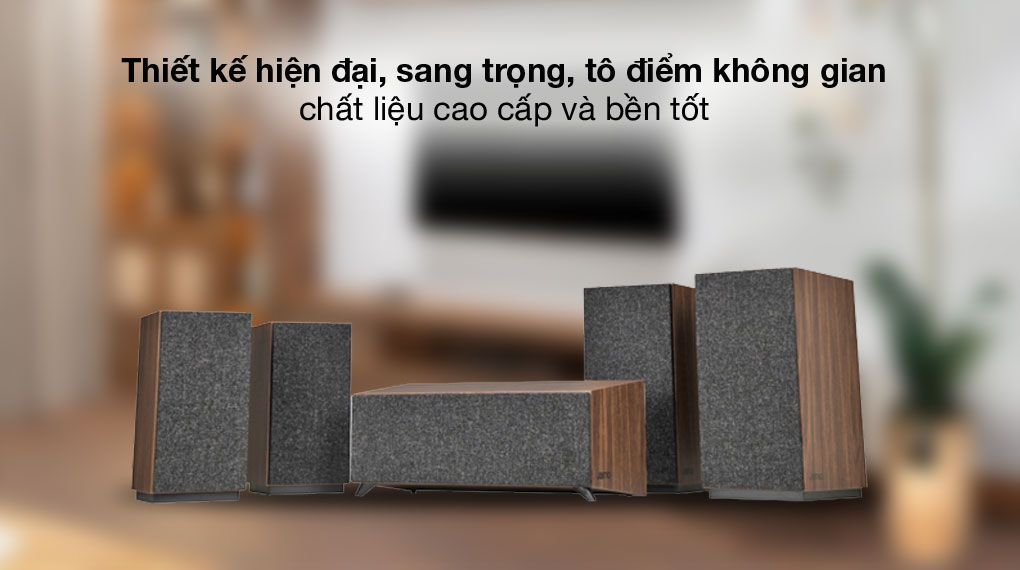 - Dàn âm thanh Jamo có chất lượng hoàn thiện tốt với thùng loa bằng gỗ MDF vân tự nhiên sang đẹp, chống bụi bẩn tốt, độ bền cao và giúp âm thanh phát ra ổn định, lôi cuốn hơn.