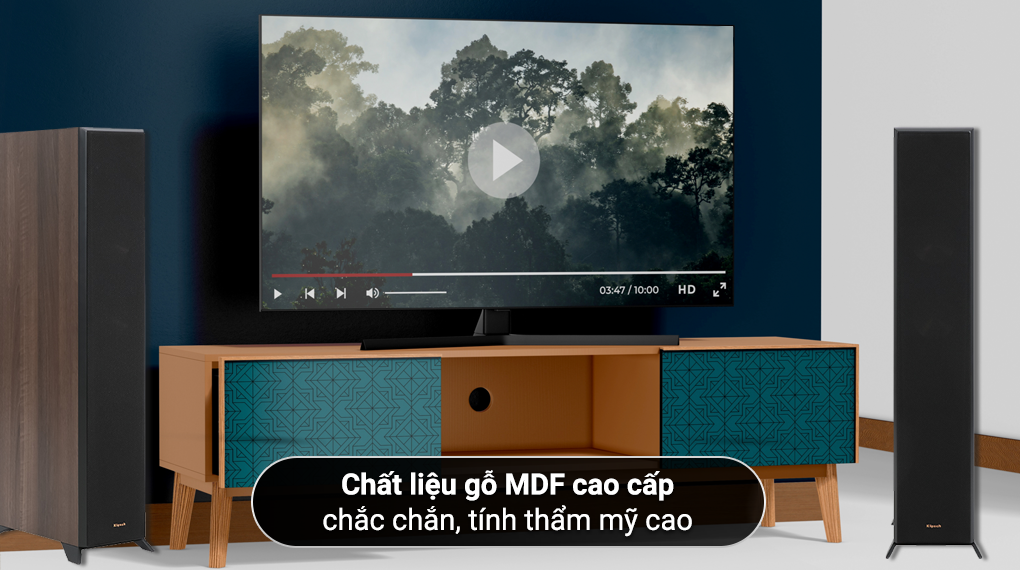 - Thùng loa Klipsch sử dụng gỗ MDF cao cấp chắc chắn, có khả năng triệt tiêu độ rung, giảm thiểu tối đa sự cộng hưởng tiêu cực tạo ra trong quá trình vận chuyển thiết bị.