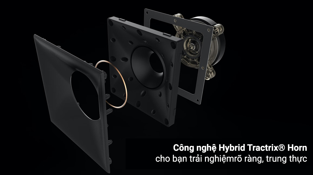 - Công nghệ âm thanh Hybrid Tractrix® Horn đảm bảo năng lượng tần số cao của loa khi đặt trên sàn sẽ hướng thẳng đến người nghe, hạn chế tiếng dội âm, cho bạn trải nghiệm nghe rõ ràng, trung thực. Mặt đúc silicon mài theo hình loa kèn, họng còi hướng 90° x 90° giúp giảm tình trạng cộng hưởng, triệt ồn, truyền âm thanh tần số cao đến tai bạn tự nhiên, chính xác hơn.