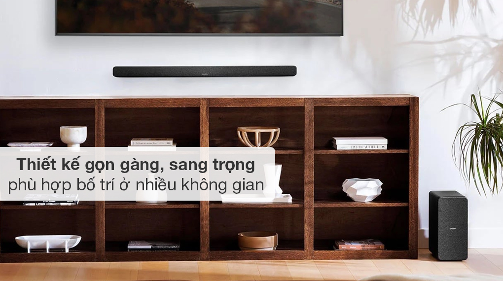 - Denon DHTS517BKE2 sở hữu đường nét tinh tế, kết cấu gọn gàng, gam màu đen lịch lãm, phối hợp hài hòa và góp phần tăng nét sang trọng cho mọi không gian nội thất.