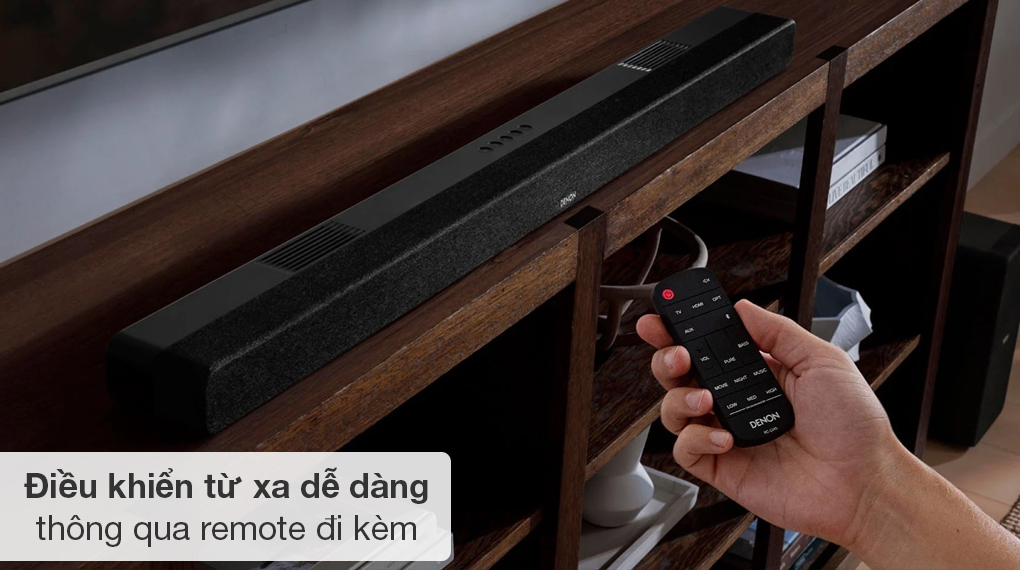 - Loa thanh Denon trang bị remote thiết kế nhỏ gọn, các phím bấm kích cỡ hợp lý, ký hiệu rõ ràng cho bạn dễ dàng quan sát và tùy chỉnh chức năng phù hợp với nhu cầu.