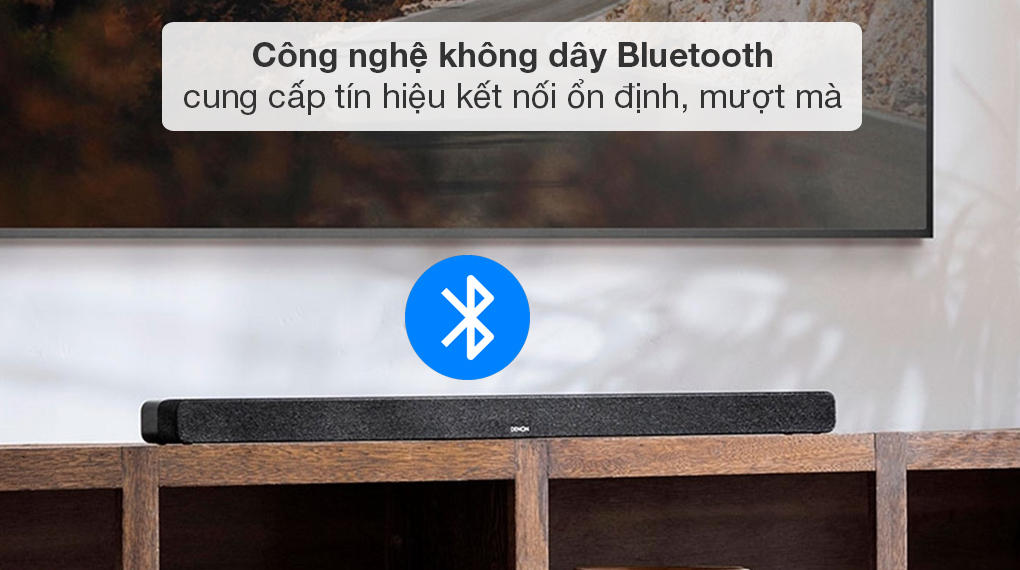 Loa Denon được hỗ trợ công nghệ Bluetooth kết nối không dây với nhiều thiết bị như: tivi, điện thoại, máy tính bảng, laptop,… tín hiệu ổn định giúp truyền tải âm thanh mượt mà để bạn nghe nhạc liền mạch. Đặc biệt, nhờ có kết nối Bluetooth, bạn không cần phối ghép bằng dây cáp vướng víu, giữ cho khu vực bố trí loa tinh giản, gọn đẹp.