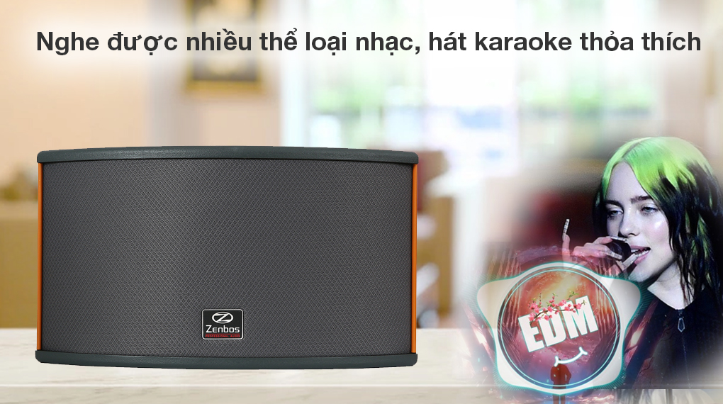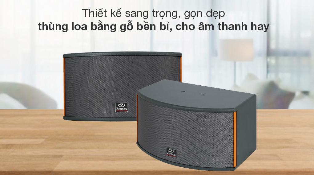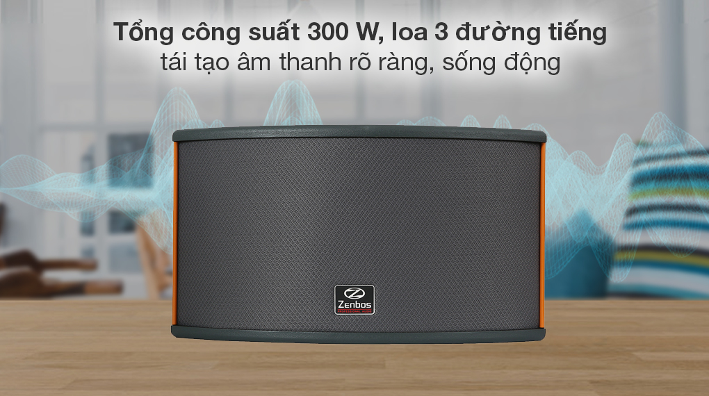 - Tổng công suất loa karaoke Zenbos này đạt 300 W mang đến chất âm chân thực, rõ ràng khi trải nghiệm các nội dung giải trí.