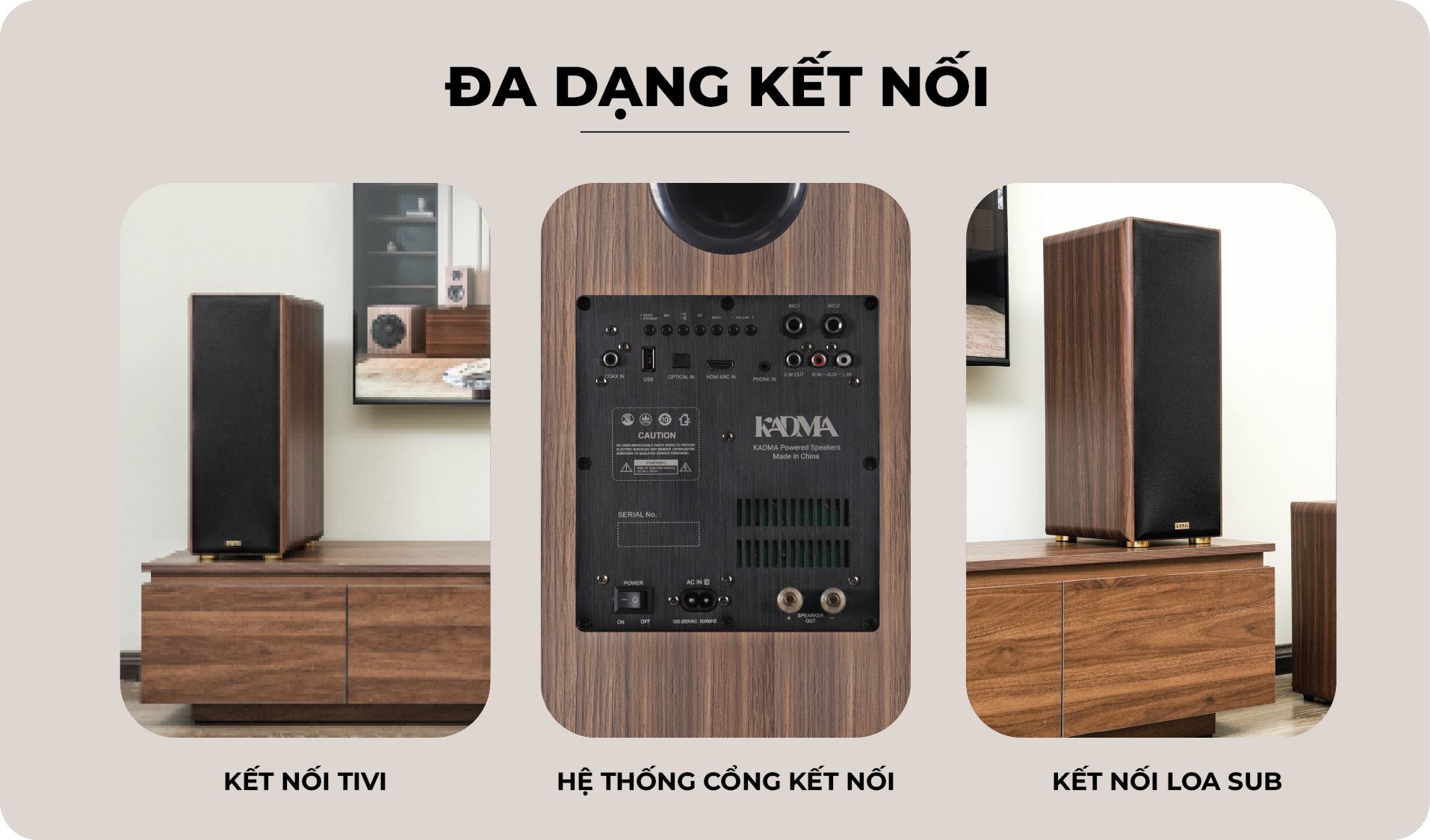 KADMA được thành lập 2023, là thương hiệu âm thanh Việt Nam tiên phong giải pháp "All In One" – kết hợp loa Hi-Fi Active nghe nhạc và Karaoke trong một thiết kế vân gỗ sang trọng. Với công nghệ mạch Class D và chống hú rít độc quyền được tối ưu bởi kỹ sư Âu - Việt, KADMA cam kết mang lại trải nghiệm âm thanh hiệu suất cao, chuẩn mực và tinh tế.