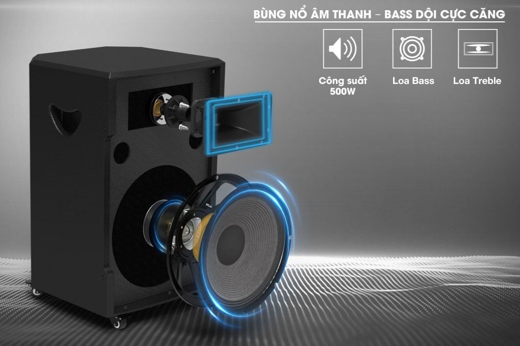 Cấu trúc 2 đường tiếng với loa bass và loa treble giúp phân tách âm thanh tốt hơn trong quá trình phát nhạc. Nhờ đó, phần nhạc nền và giọng hát thể hiện rõ ràng, phù hợp nhiều thể loại nhạc quen thuộc khi karaoke.