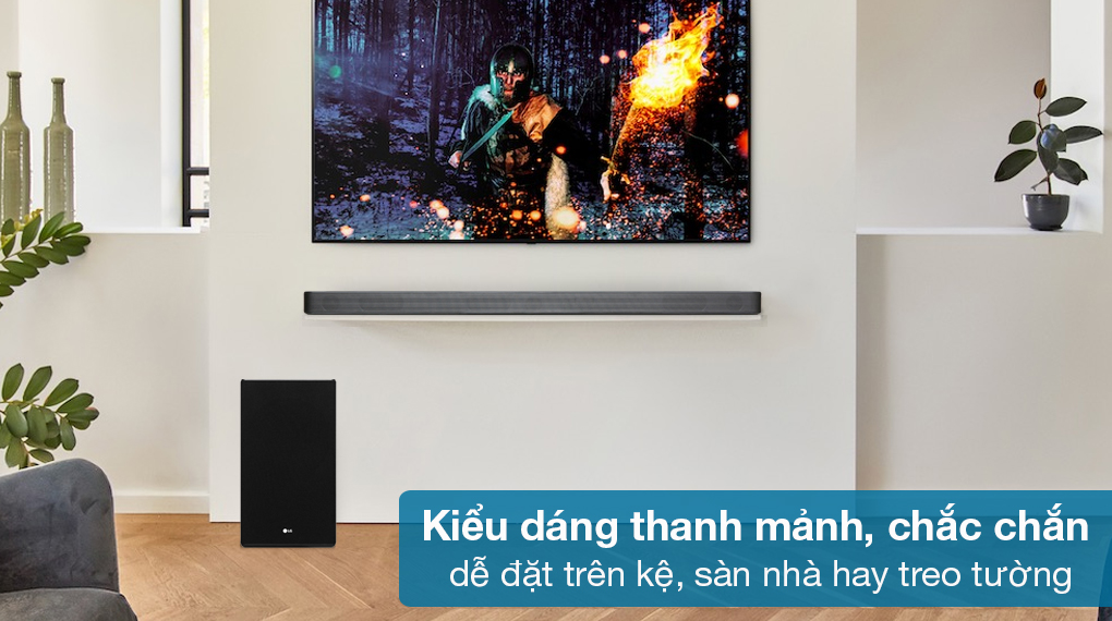 Loa thanh soundbar LG 3.1.2 SL8Y gây ấn tượng bởi kiểu dáng thanh mảnh, gọn nhẹ cùng tông màu đen trung tính sẽ mang đến phong cách sống hiện đại, hài hoà cho không gian đặt.