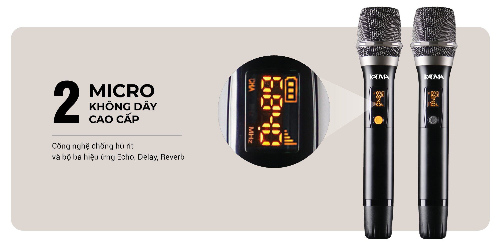 Chất âm của KM-KS68 được tinh chỉnh theo hướng mạnh mẽ và dễ nghe, công nghệ tăng cường bass giúp không gian nghe trở nên sôi động hơn, trong khi tính năng chống hú rít hỗ trợ tốt cho karaoke, giảm hiện tượng nhiễu và phản hồi âm khi sử dụng micro. Các thông số bass, treble, echo hay reverb đều có thể điều chỉnh linh hoạt, giúp người dùng dễ dàng cá nhân hóa trải nghiệm âm thanh.