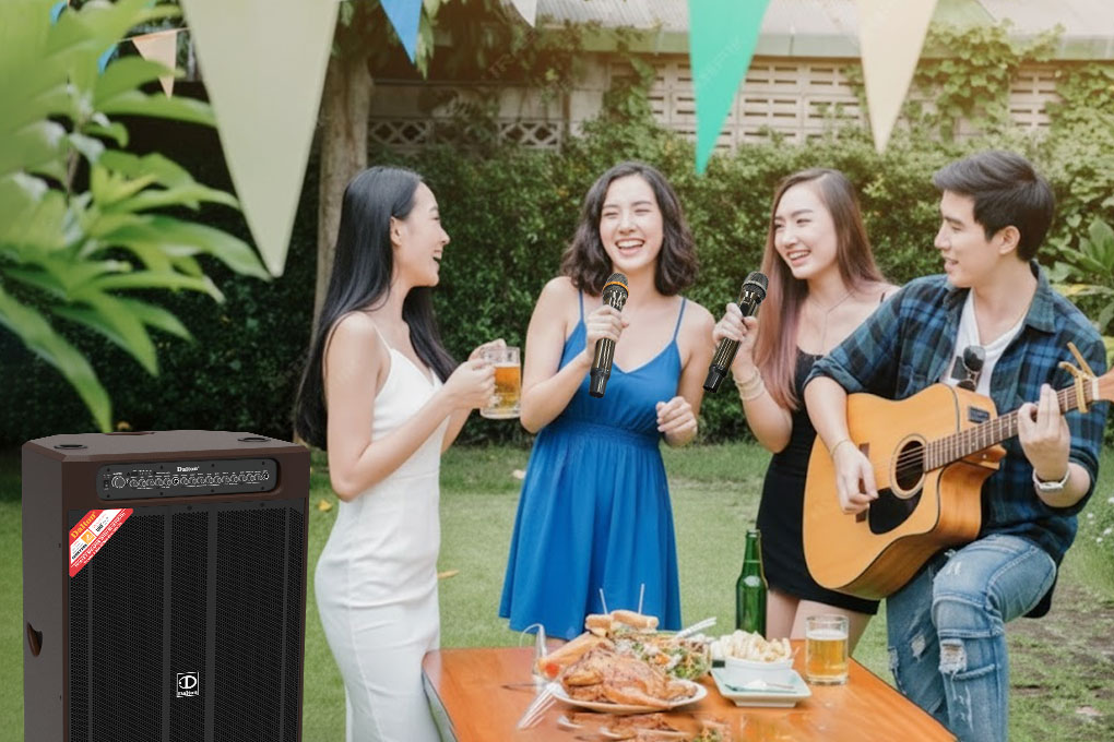 Loa sử dụng nguồn điện trực tiếp, phù hợp cho nhu cầu phát nhạc và hát karaoke trong thời gian dài, giữ mức công suất ổn định khi hoạt động liên tục ở không gian rộng như tiệc, hội trường hoặc khu vực ngoài trời.
