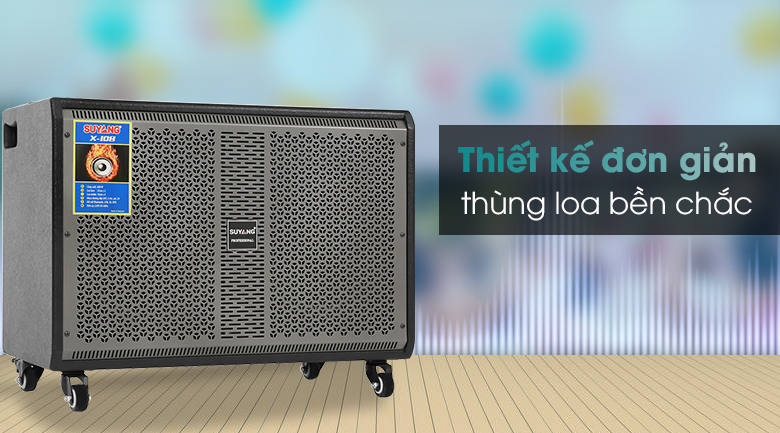 Loa điện Karaoke SuYang X-108 600 W có thiết kế hình chữ nhật ngang gọn gàng, đường nét bo tròn đẹp mắt, vừa đơn giản nhưng cũng rất vững chắc phù hợp với mọi không gian sử dụng.