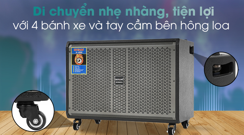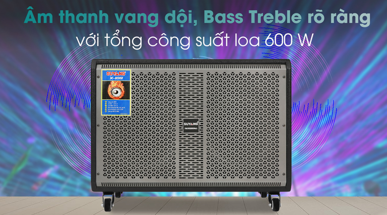 Loa điện được trang bị 2 loa Bass đường kính khoảng 25 cm, 4 loa Treble 10 cm cùng với tổng công suất loa Suyang 600W, loa 2 đường tiếng cho chất âm lôi cuốn, vang dội, nghe rõ ràng từng âm sắc.