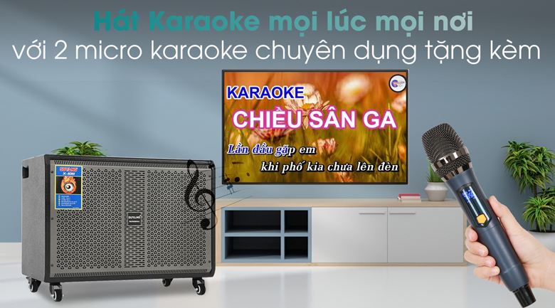 • Hát karaoke thỏa thích với 2 micro được tặng kèm.