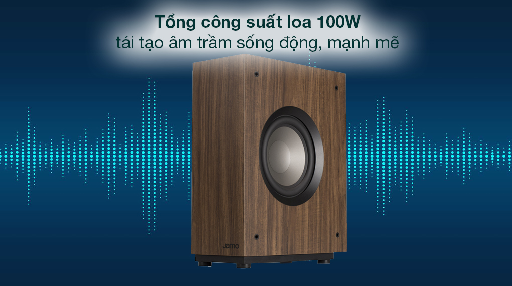 - Dàn âm thanh Jamo sử dụng nguồn điện trực tiếp, có tổng công suất 100W, giúp tái tạo âm bass mạnh mẽ, cuốn hút.