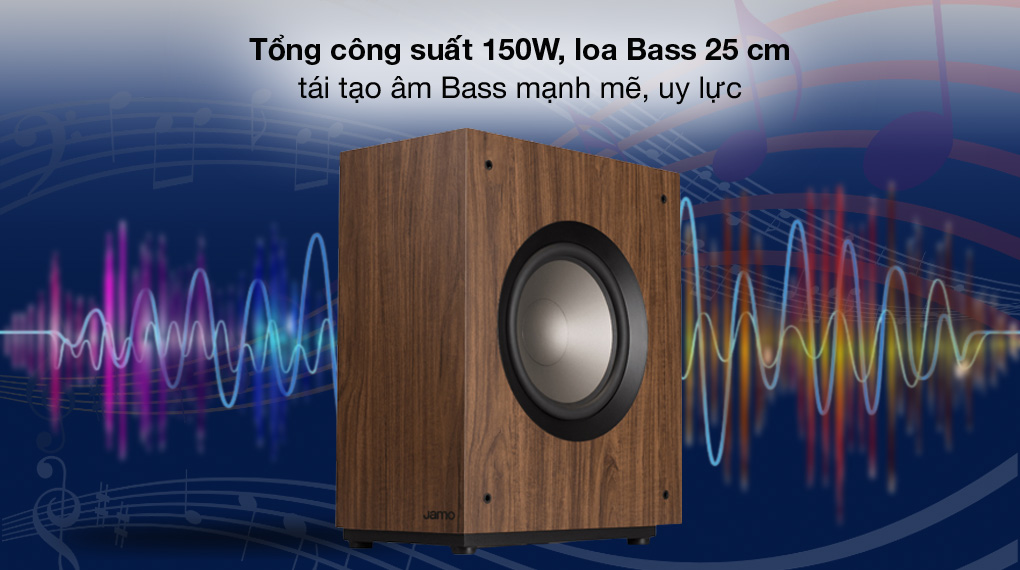 Loa siêu trầm Jamo S810 Walnut bề mặt gỗ MDF tự nhiên, mịn màng, kích thước gọn gàng dễ bố trí, công suất mạnh mẽ 150W cùng công nghệ Bass Reflex giúp âm thanh sống động, lôi cuốn, thêm sức hút cho dàn âm thanh hoàn chỉnh tại gia đình.