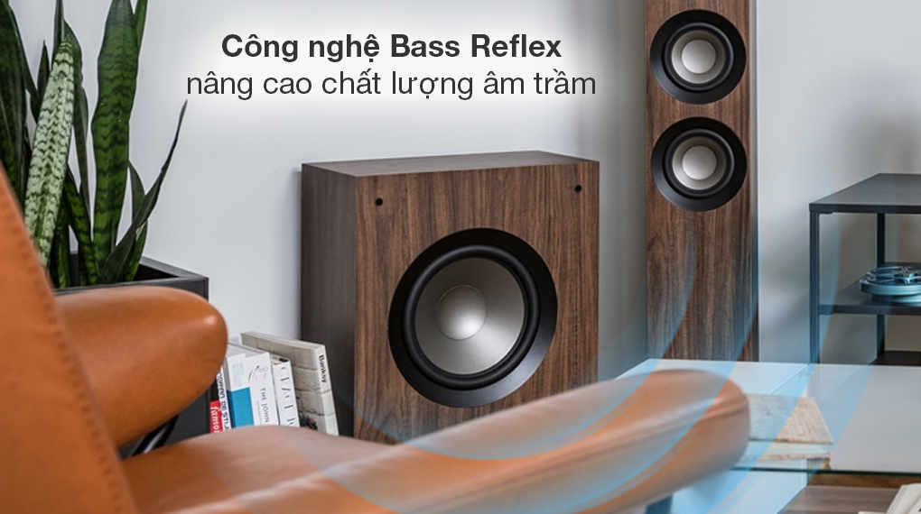 - Công nghệ Bass Reflex có khả năng tăng cường dải âm trầm mà không gây ảnh hưởng đến các dải âm tần số trung và cao, nhờ đó âm thanh mạnh mẽ, vang dội hơn mà không bị tình trạng méo tiếng, các dải âm vẫn rành mạch, cuốn hút.