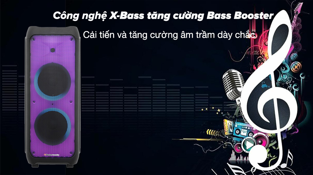Công nghệ X-Bass tăng cường Bass Booster: Giúp cho loa cải thiện và tăng cường chất lượng âm trầm khi phát ra, nâng cao việc thưởng thức các dòng nhạc pop, dance hay nhạc hip hop trở nên trọn vẹn hơn.