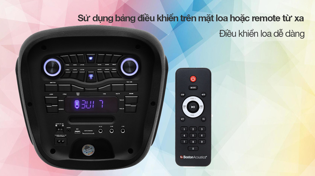 Bạn có thể sử dụng remote để điều khiển từ xa các chức năng loa nhanh chóng, hoặc có thể dùng các nút bấm - vặn cơ học được thiết kế trên bảng điều khiển (nằm ở mặt trên của loa).