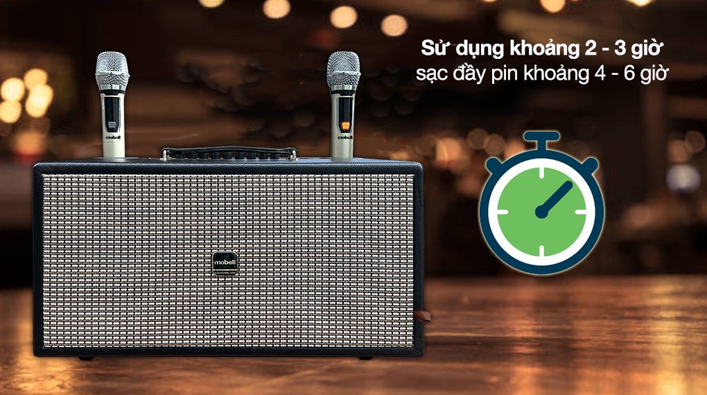 - Loa karaoke Mobell MK-4260A sử dụng nguồn điện chính là bình ắc-quy, đáp ứng nhu cầu thưởng thức âm nhạc khoảng 2 đến 3 tiếng, sau đó sản phẩm được sạc 4 đến 6 tiếng.