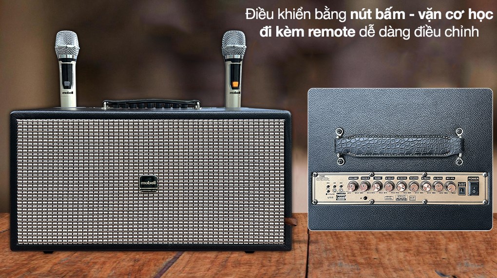 - Phía trên của loa Mobell tích hợp bảng điều khiển nút vặn cơ học, thiết kế từng nút khác nhau có những chức năng riêng để bạn tùy chỉnh âm thanh theo sự mong muốn của mình.