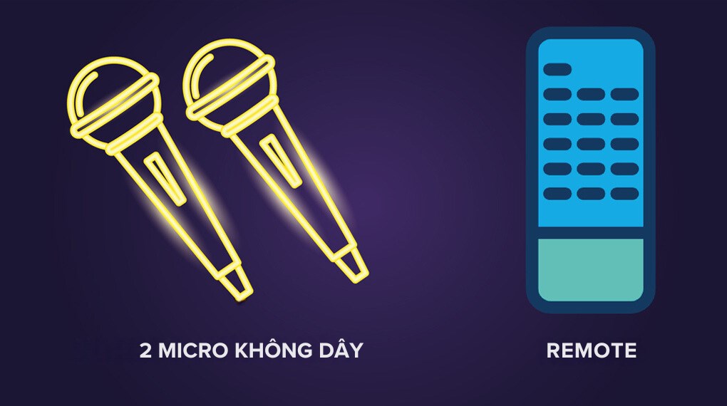 - Loa tích hợp 2 micro không dây chất lượng cao giúp người dùng tận hưởng sở thích hát karaoke mà không tốn thêm chi phí mua micro ngoài.