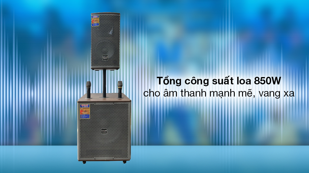 - Tổng công suất loa 850W đem đến âm thanh chất lượng cao, tái tạo âm sắc rõ nét, vang dội.