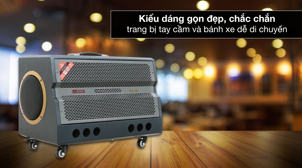 - Hệ thống tay xách chắc chắn và bánh xe linh hoạt được tích hợp trực tiếp vào loa, hỗ trợ người dùng dễ dàng di chuyển sản phẩm mà không tốn nhiều công sức.