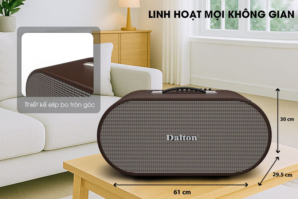 Dalton K220C có kiểu dáng loa xách tay dạng nằm ngang với thiết kế cân đối và trọng lượng vừa phải, tạo cảm giác chắc chắn khi đặt trong phòng khách, đồng thời vẫn thuận tiện di chuyển giữa các không gian sử dụng.