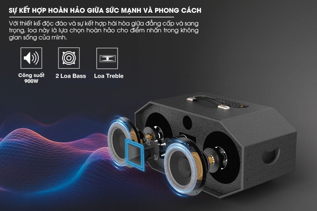 Hai loa bass tạo ra dải trầm cực kỳ sâu và đầy uy lực, cho cảm giác từng cú đánh bass như lan tỏa mạnh mẽ khắp không gian. Dải cao (treble) sáng và sắc nét, tái hiện chi tiết rõ ràng, giúp tổng thể âm thanh trở nên cân bằng, sống động và tràn đầy năng lượng