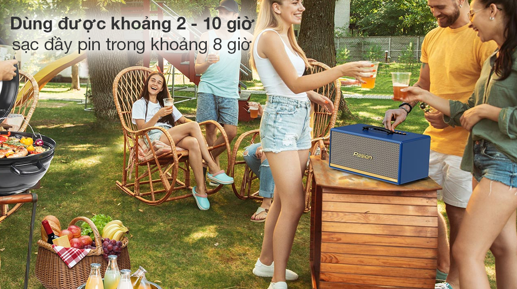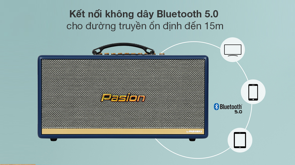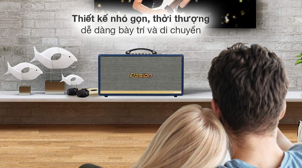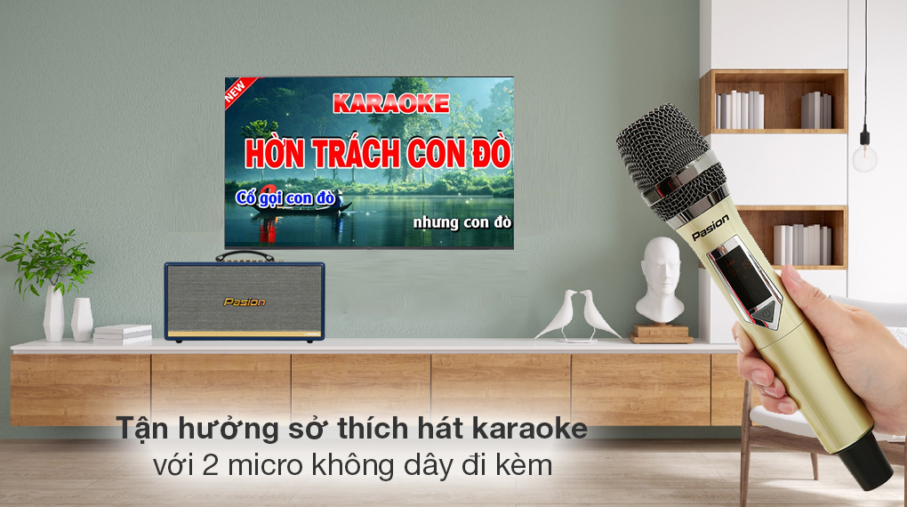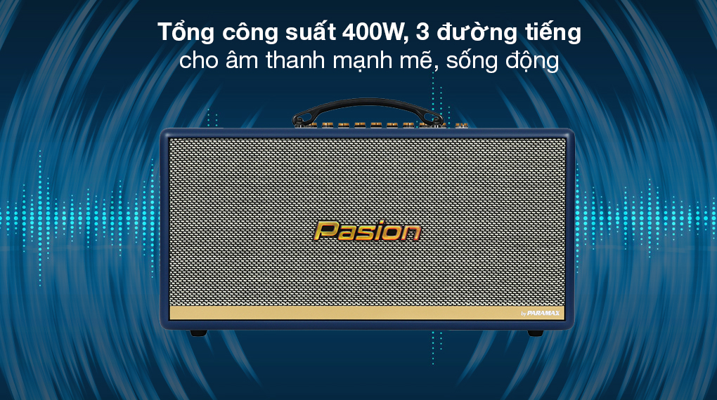 - Loa karaoke xách tay PASION có 3 đường tiếng, tổng công suất 400W, đáp ứng nhu cầu giải trí trong phòng khách, phòng ngủ, tiệc gia đình có không gian vừa phải.
