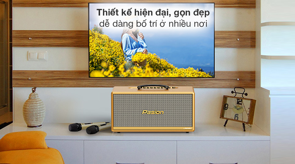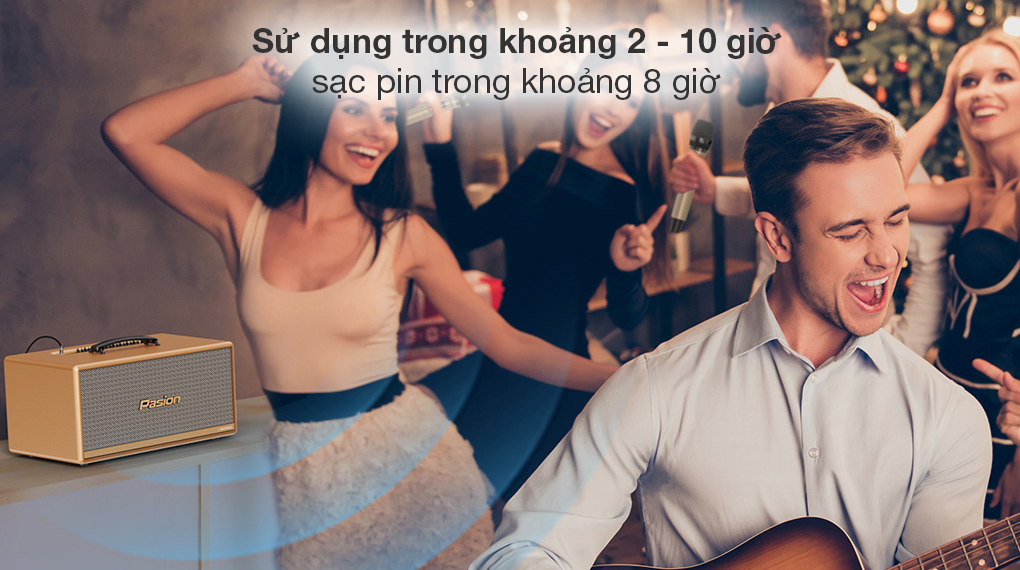 Loa karaoke xách tay PASION cho bạn đem âm nhạc đến mọi nơi mà không cần lo lắng tìm chỗ cắm dây điện để bổ sung năng lượng cho loa. Khi sản phẩm sử dụng pin sạc đáp ứng từ 2 - 10 giờ trải nghiệm liên tục, nếu pin yếu, bạn cắm sạc trong thời gian khoảng 8 giờ.